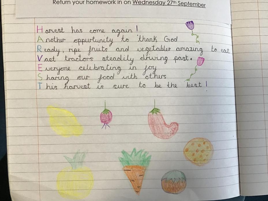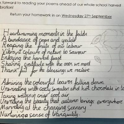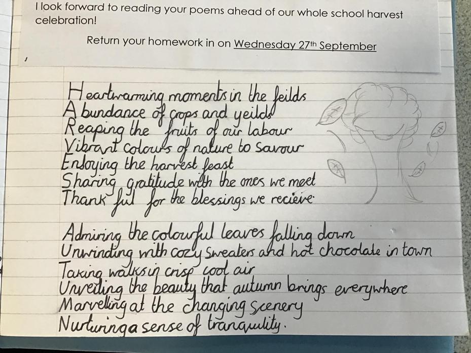 • There was some wonderful Harvest poems written for homework.